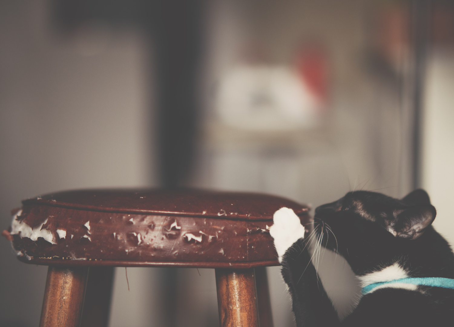 Une des alternatives est de mettre un matériau inconfortable pour votre chat sur le meuble abîmé (papier alu, scotch double face, ….) et de placer un griffoir à côté. Vous enlevez le matériau lorsqu’il utilise le griffoir.